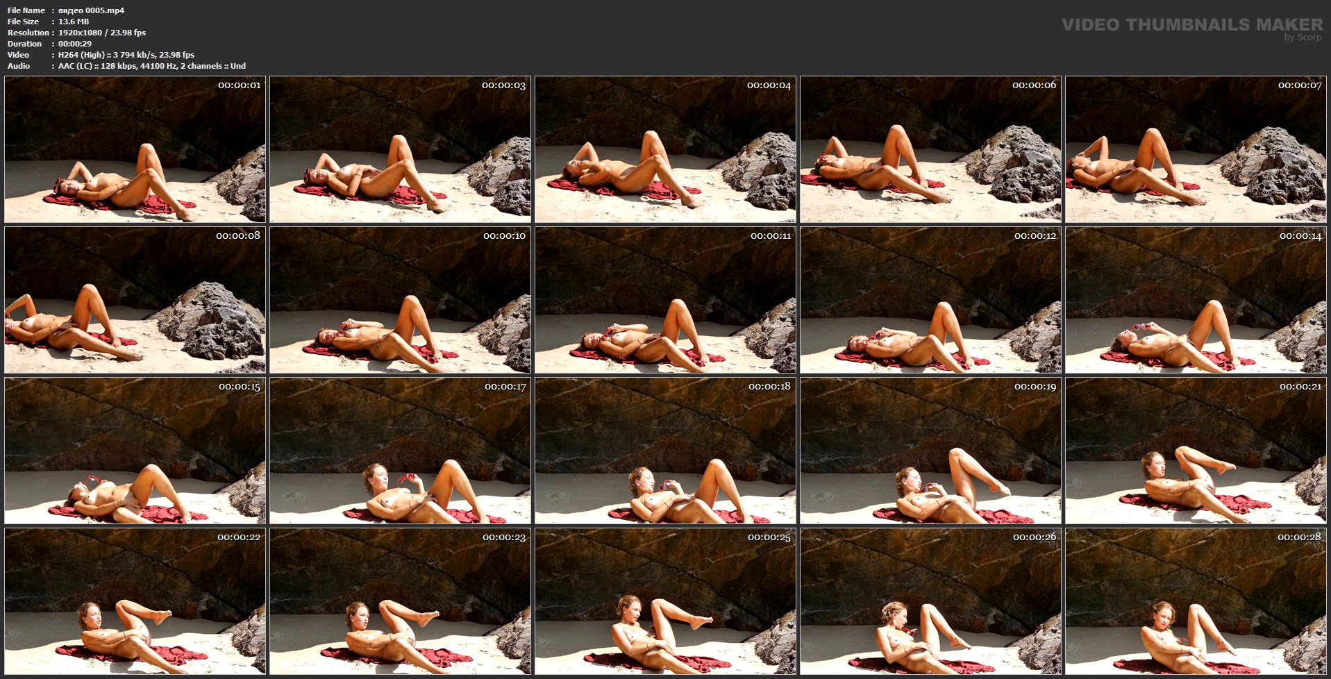 Описание: Видео пары с отдыха. Место отдыха не известно. Девушка симпатичная. Пару роликов им приходилось переснимать видно кто-то шел и палил их. Смотрите Сами.